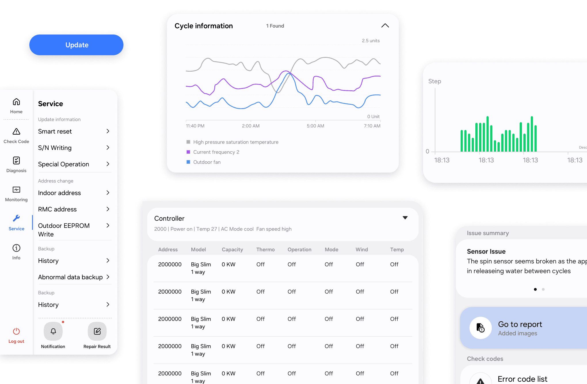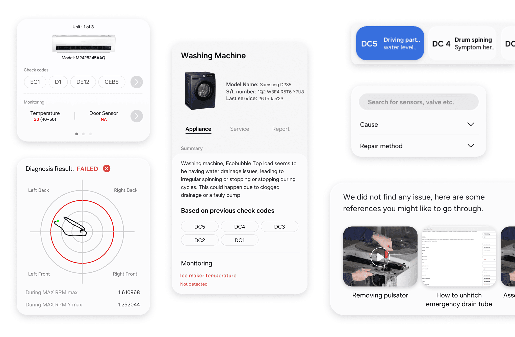 Each product line had unique diagnostic flows and specialized tools. Constraint → Create a unified design system that could flex for both simple and highly complex appliances.