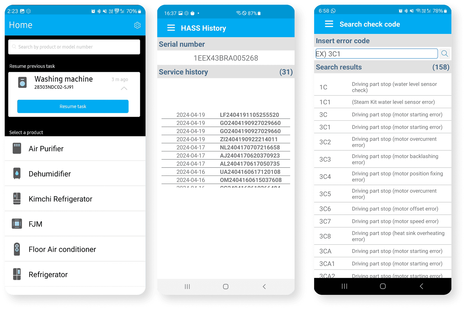 Technicians often worked in difficult conditions — rooftops, noisy workshops, or homes with poor connectivity. This demanded a design that was resilient: offline-first, legible in low-light, and optimized for fast, error-free interaction, so technicians could focus on fixing appliances rather than fighting the tool.